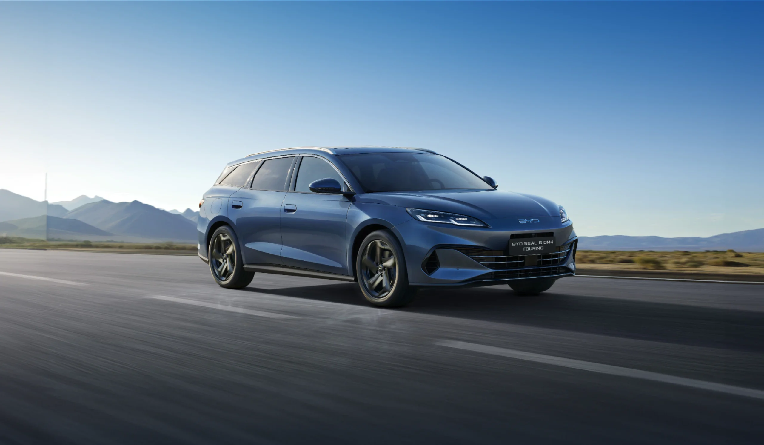 SEAL 6 DM-i TOURING combină limbajul de design caracteristic BYD cu o configurație practică și spațioasă a cabinei. Partea frontală prezintă linii line, asemănătoare oceanului, și o secțiune inferioară mai ascuțită, care îi conferă un aspect curat și modern.