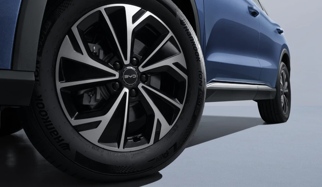 BYD SEALION 5 DM-i vine cu jante bicolore impresionante de 18 inci. Designul lor accentuează postura sportivă a mașinii și oferă performanțe și aderență excelente.