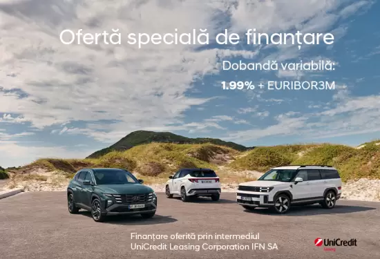 Pentru mai multe informatii despre finantarea prin UniCredit Leasing, contactati un consultant de vanzari DAB Auto. Oferta este valabila exclusiv pentru persoane fizice.