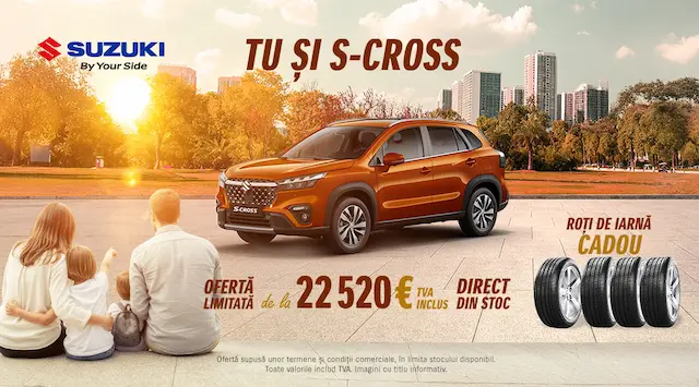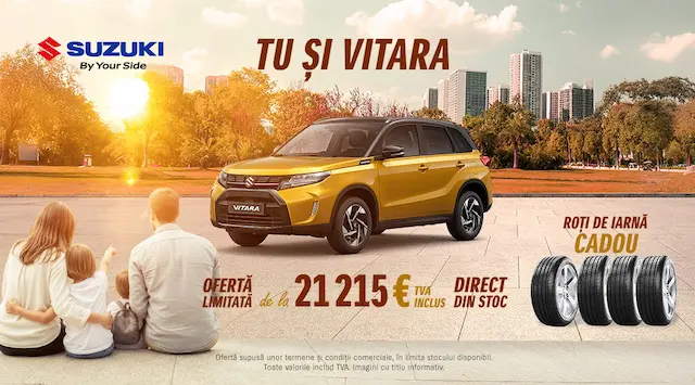 Profită acum de oferta limitată începând cu 16.255 EUR (TVA inclus) și de roțile de iarnă cadou. Completează formularul, alege modelul care ți se potrivește și dealerii Suzuki te vor contacta în cel mai scurt timp.