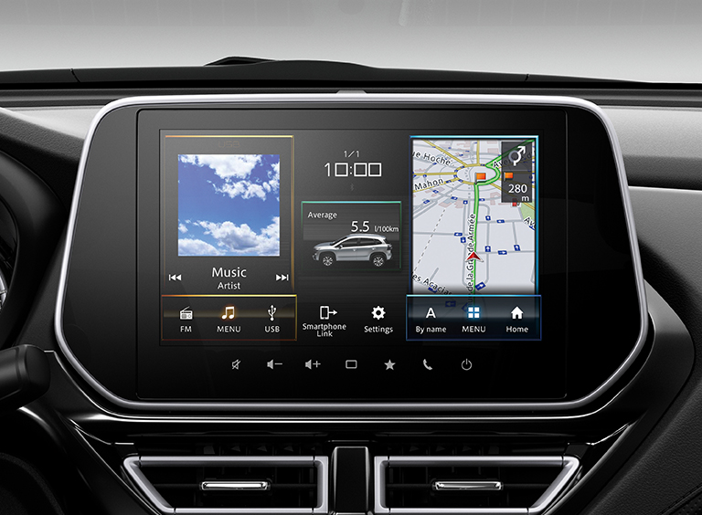 Sistemul Strong Hybrid, compact și ușor, oferă o combinație eficientă de propulsie hibridă și electrică, contribuind la economia de combustibil. Componentele sale includ motorul 1.5 DUALJET, o unitate generatoare de motor (MGU), o transmisie automată și un pachet de alimentare format dintr-o baterie litiu-ion de 140V și un invertor. MGU-ul, extrem de eficient și puternic, poate propulsa singur vehiculul în mod electric și asistă motorul în accelerație. De asemenea, permite rularea electrică în marșarier și completează intervalul de cuplu în timp ce ambreiajul este decuplat pentru schimbări line de treaptă. La viteze constante, MGU-ul utilizează puterea motorului pentru a genera energie electrică în mod eficient, extinzând astfel autonomia și menținând o eficiență ridicată a consumului de combustibil, în timp ce asigură zgomot redus. În timpul decelerației, MGU-ul recuperează eficient energia cinetică pentru a reîncărca bateria și a menține nivelul optim al acesteia.
