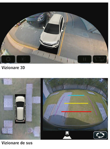 Acest sistem adaugă un nivel suplimentar de siguranță și confort în utilizare. Cu ajutorul celor patru camere amplasate față, spate și laterale, se proiecteză imaginile în timp real pe ecranul central, oferind o imagine panoramică a periferiei vehiculului. Principalele caracteristici sunt: