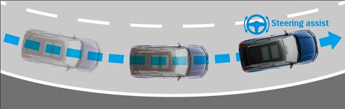 Atunci când este activat controlul adaptiv al vitezei de croazieră, LKA îl ajută pe șofer să mențină poziția vehiculului în centrul benzii de rulare. În plus, în cazul în care detectează că un vehicul sau o structură adiacentă, cum ar fi o barieră temporară sau un alt obstacol, se află prea aproape de vehiculul șoferului, acesta oferă asistență la direcție pentru a menține o distanță de siguranță.