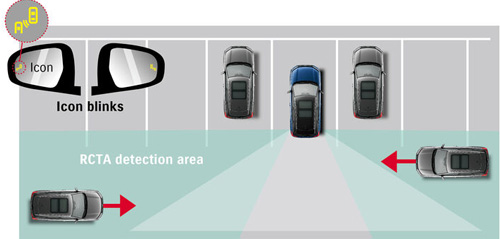 RCTA este o funcție de siguranță suplimentară care utilizează senzori radar pentru a detecta și a te avertiza că se apropie vehicule din stângă sau din dreapta atunci când te deplasezi în marșarier dintr-un loc de parcare sau dintr-un garaj.