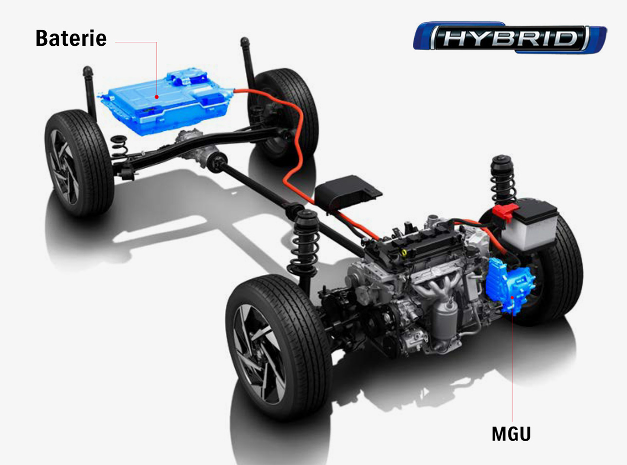 Sistem Strong Hybrid: Sistemul strong hybrid este compus dintr-un motor-generator (Motor Generator Unit, MGU), o baterie litiu-ion de 140 V și o cutie automată (Auto Gear Shift, AGS) cu șase trepte. MGU oferă putere pentru conducerea complet electrică, precum și asistență motorului electric pentru o accelerare eficientă din punctul de vedere al consumului de combustibil. În plus, generează energie electrică pentru a încărca bateria la rularea cu viteză constantă și nu prea mare și la decelerare.