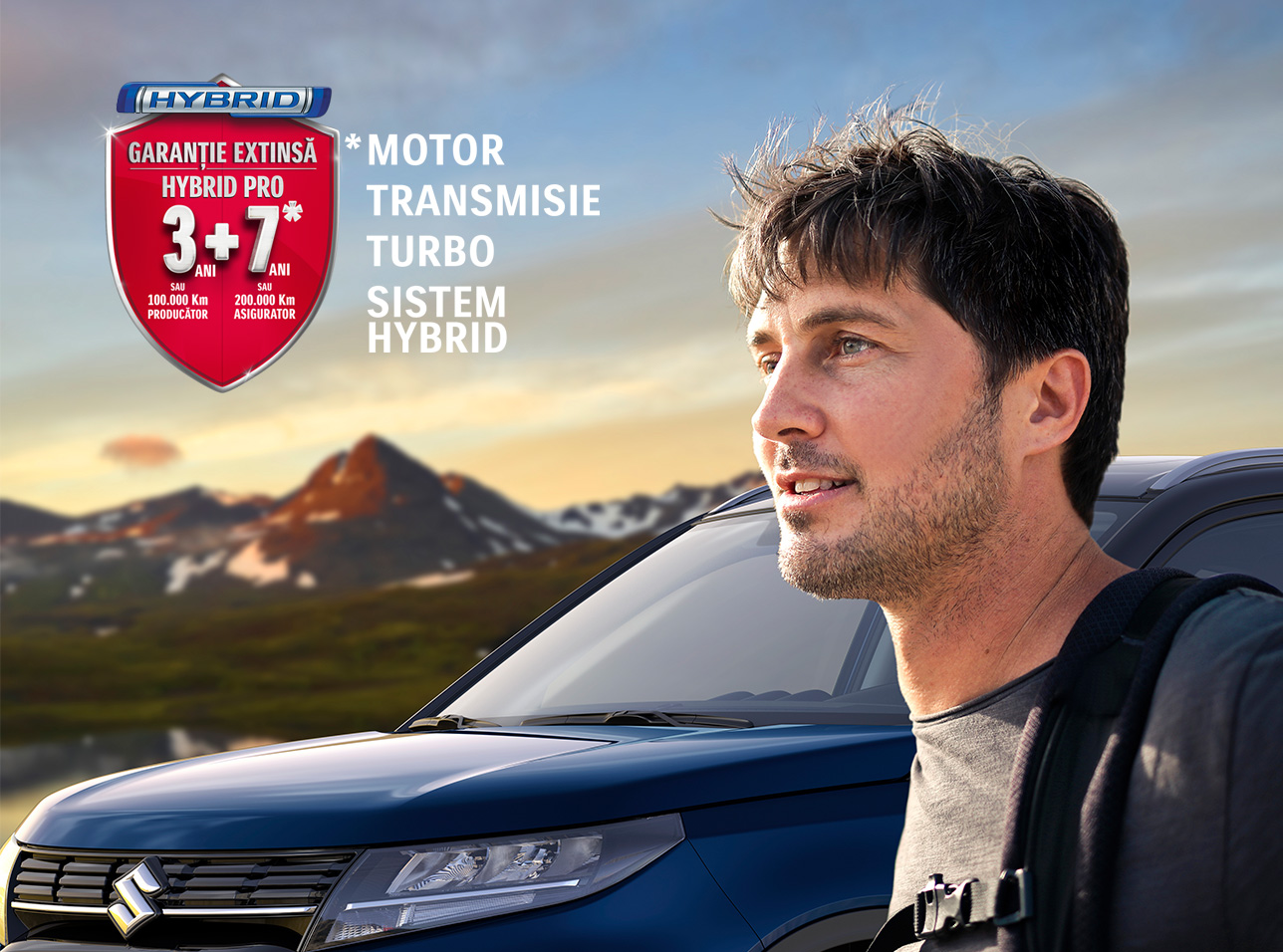 Garanția extinsă Hybrid Pro oferă o extindere a perioadei de garanție standard de 3 ani cu până la 7 ani sau 200.000 km pentru modelele Suzuki echipate cu tehnologie Hybrid și acoperă principalele componente ale vehiculului, inclusiv motorul, cutia de viteze, turbosuflanta și sistemul Hybrid.